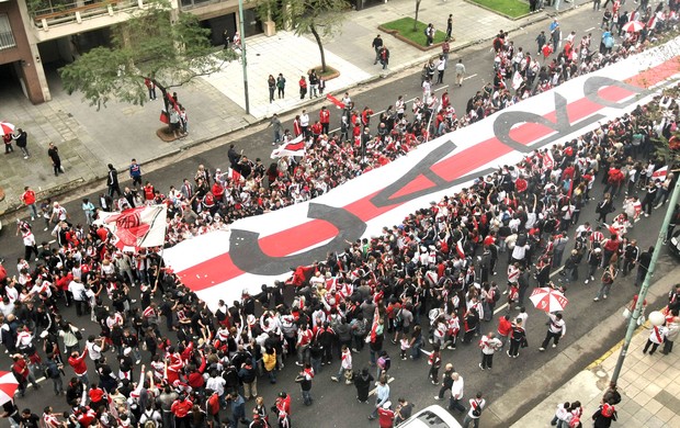 Cerca de 50 mil de torcedores do River Plate foram às ruas de Buenos Aires nesta segunda-feira para apresentar a "maior bandeira do mundo", com quase oito quilômetros de comprimento e que entrou no livro dos recordes, o Guiness. Eles participaram de um desfile até o estádio Monumental, onde assistiram a uma partida amistosa.