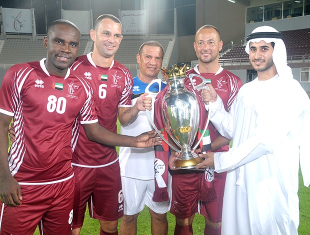 Magrão, com a camisa 6, estava no mesmo time de Hugo, ex-Sport, em Dubai (Foto: Divulgação)