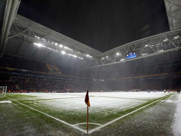 A interrupção do confronto aconteceu aos 32min do primeiro tempo, após conversa entre o árbitro português Pedro Proença e os jogadores das duas equipes. O gramado chegou a ficar quase que inteiramente branco após ficar coberto por neve.